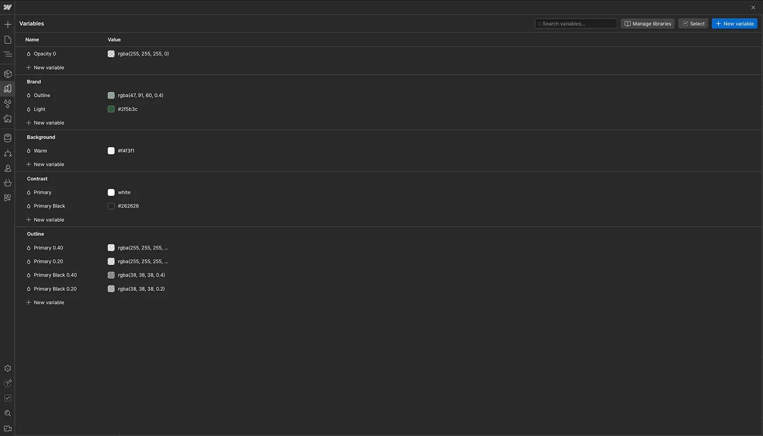 Easily customize the primary, secondary, and additional color palettes using Webflow's Variables feature, which simplifies managing your site's color schemes.